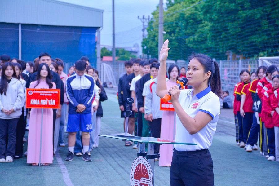 Tiếp đó, vận động viên Nguyễn Việt Dương - Đoàn vận động viên khoa Khoa học Thể dục Thể thao, đại diện cho các vận động viên tuyên thệ, hứa sẽ thi đấu hết mình, trung thực và tuân thủ đúng Điều lệ Giải đấu. Trọng tài Phạm Thị Thái - đại diện Tổ trọng tài tuyên thệ sẽ điều hành các nội dung thi đấu khách quan, trung thực, trách nhiệm, tuân thủ đúng quy chế Giải đấu. Lời tuyên thệ mạnh mẽ, lời hứa đảm bảo cho Giải đấu được diễn ra công tâm và khách quan và công bằng nhất; thực hiện tốt những quy định của Giải, thi đấu với tinh thần thể thao mạnh mẽ và cao đẹp nhất.